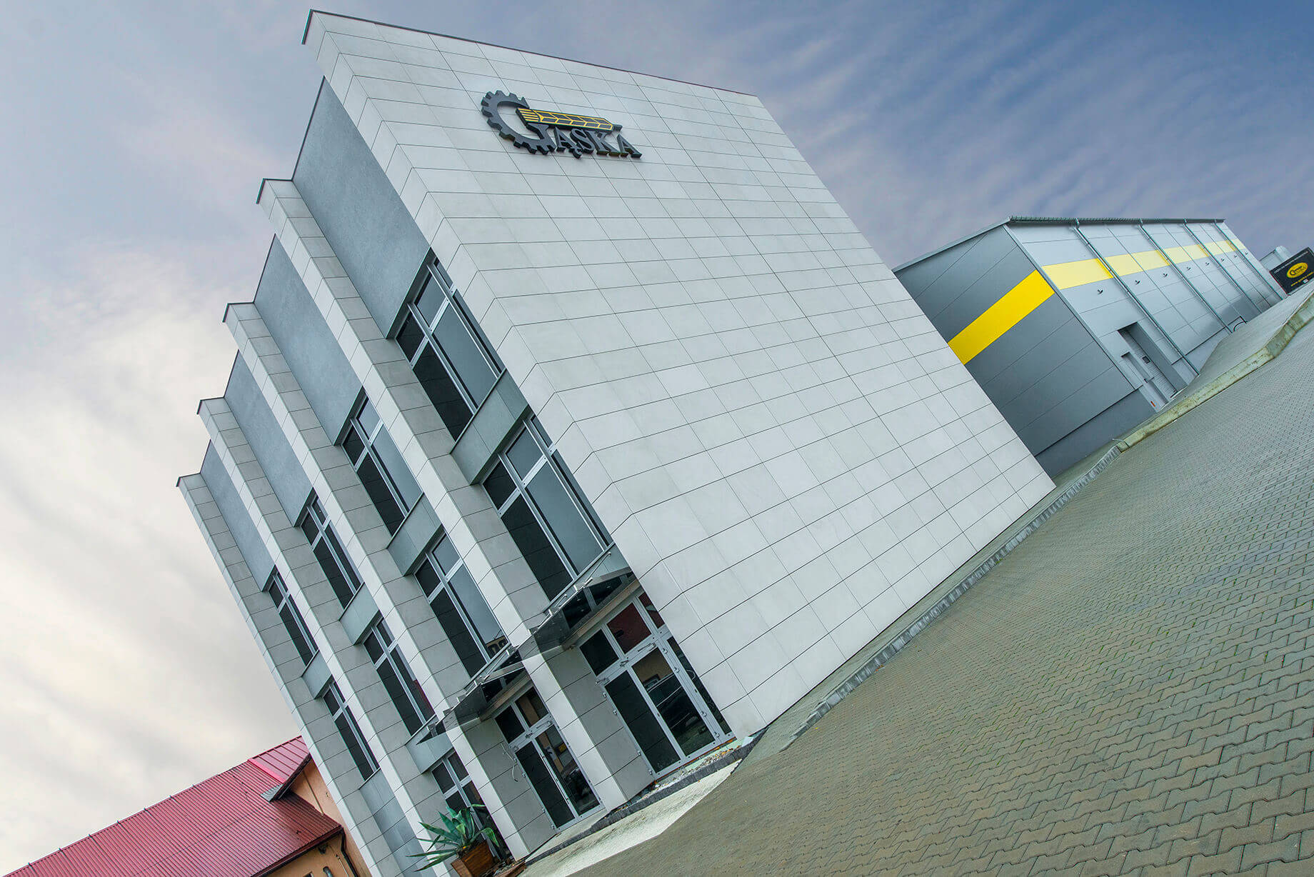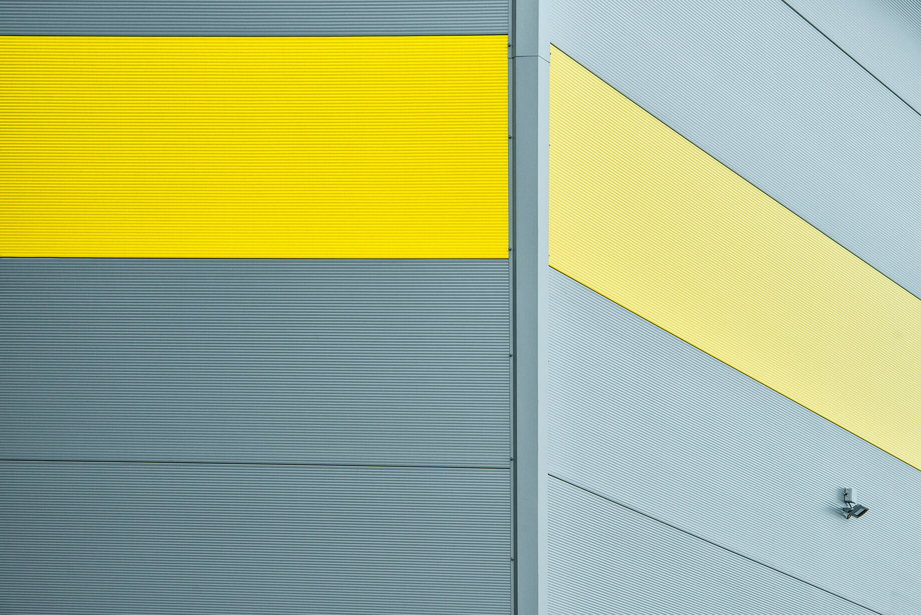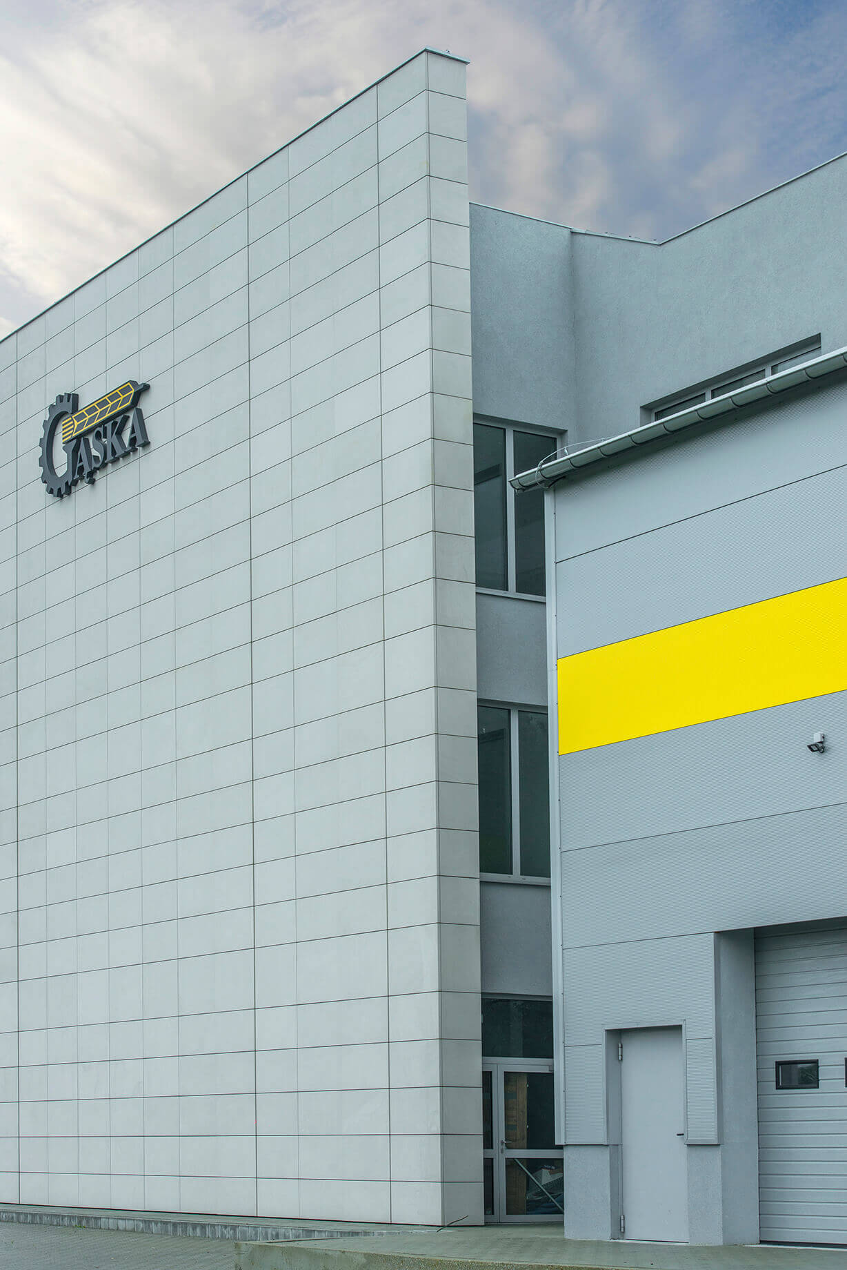 Покрівля будівлі виконана з панелей ARPANEL D PUR кольору RAL 9006 товщиною 120 мм і 100 мм, а фасад виконано з сендвіч-панелей із прихованою системою кріплення ARPANEL SU PIR товщиною 60 і 80 мм кольору RAL 9006 і стрічкою жовтого кольору RAL 1018.