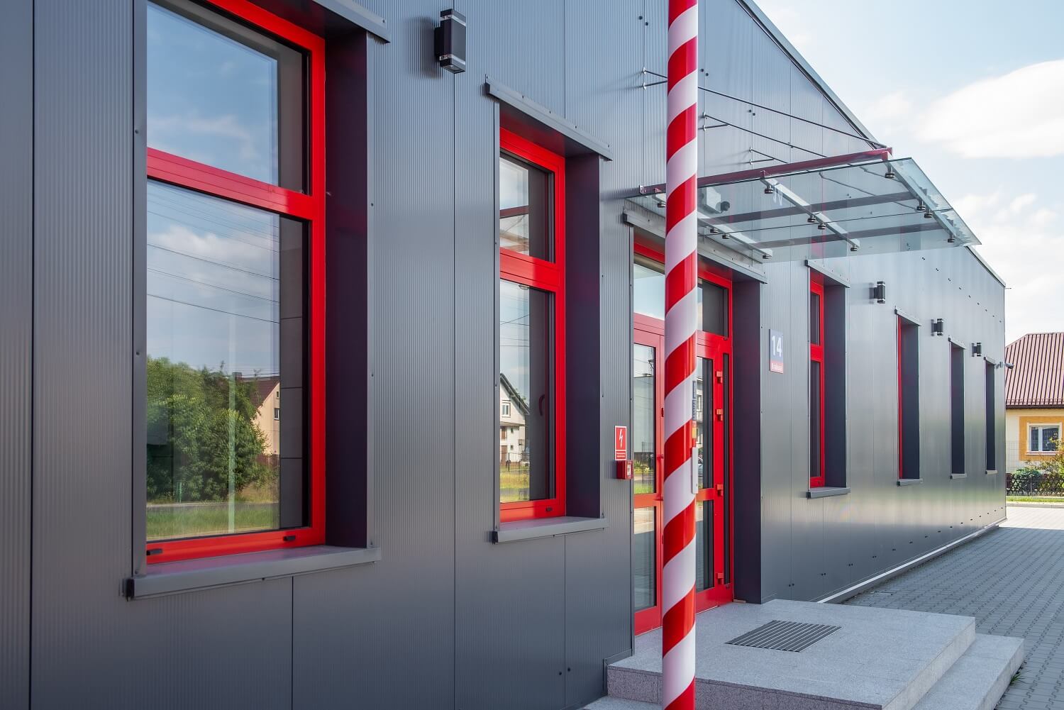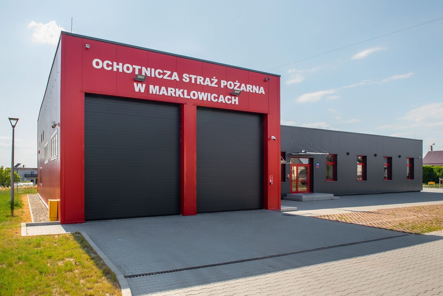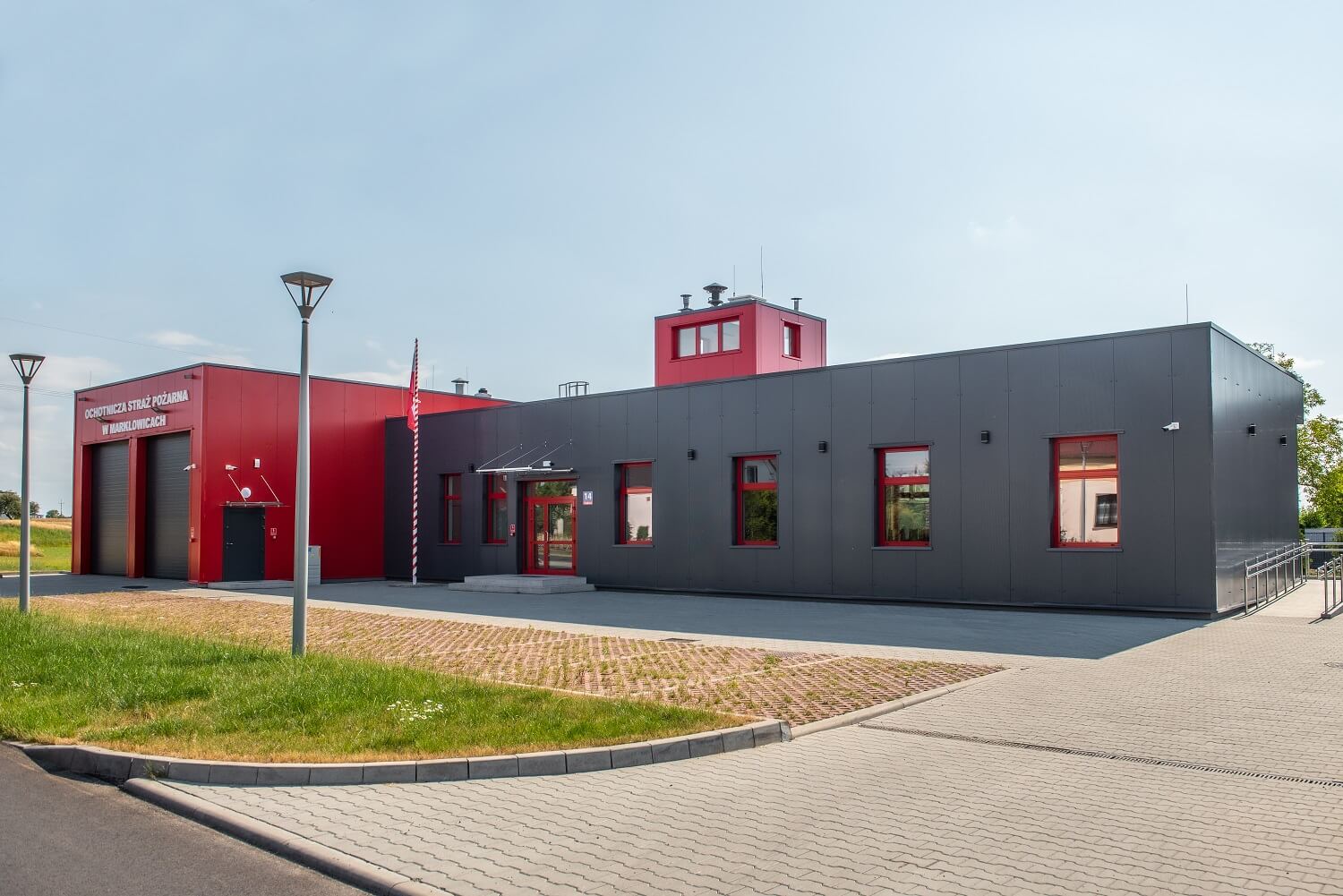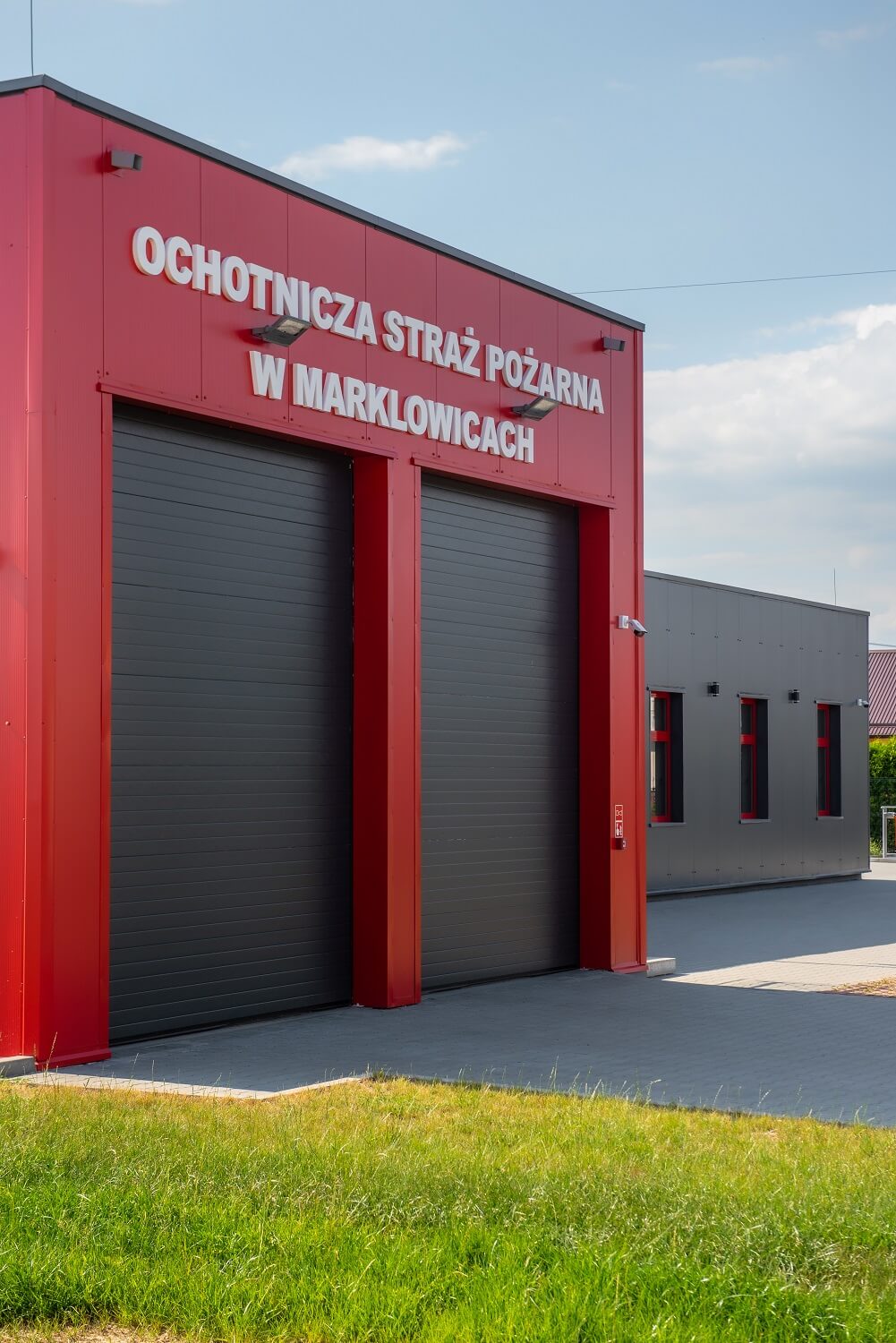 Стінові сендвіч-панелі ARPANEL S MiWo кольору RAL 3000 і ARPANEL S PUR кольору RAL 7024 були використані для покриття стін приміщення БО Добровільної пожежної команди в м. Маркловіце.⛑🚒🏣🚨