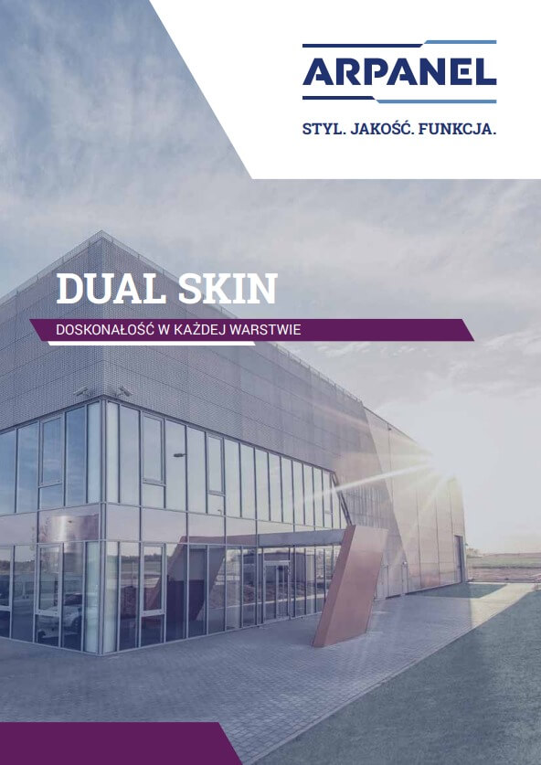 DUAL SKIN – це унікальне архітектурне рішення, яке має на меті підвищити естетичну цінність реалізованого об’єкта за допомогою високоякісних сендвіч-панелей ARPANEL з надзвичайною естетикою додаткового архітектурного облицювання, яке кріпиться до панелей за допомогою системних рейок. 🏢